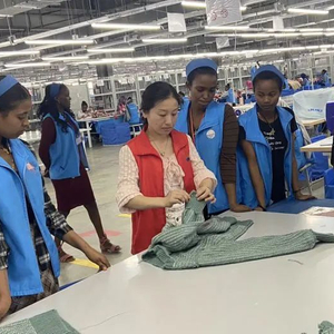 对此,党晔深有体会。埃塞毛衫基地项目自实施以来,已累计为埃塞俄比亚创汇5500万美元,创造就业岗位3500个。要管理三千余名属地化员工,许多心得在实践中逐渐摸索积累:首先是了解和尊重当地员工的文化和习惯,劳动法的学习至关重要,要按照当地的法律法规去管理工人。毛衫基地从一开始就进行了属地化布局,培养本地管理层,并招聘了东华大学毕业的埃塞俄比亚留学生,这成了管理团队与当地员工的重要纽带。党晔指出,授人以鱼不如授人以渔,做好培训很重要,要成为当地人的朋友。其次要教当地员工学中文,自己也要学习当地的基本用语,语言是沟通的最好桥梁。与当地员工的团建也不可或缺,大家相互间建立感情,对当地员工的健康及家庭困难及时给予关怀慰问。