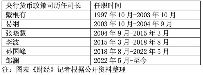 根据公开资料,在1998年国务院机构改革中,央行首设货币政策司。迄今为止,货币政策司共历经六任司长,分别是戴根有、易纲、张晓慧、李波、孙国峰和邹澜。