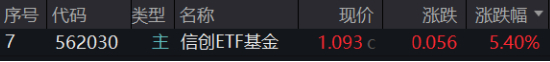 热门ETF方面,紧密跟踪中证信创指数的信创ETF基金(562030)全天强势上攻,场内价格猛拉5.4%,单日涨幅高居全市场ETF第七,全市场7只同类竞品ETF中,涨幅排名第一!
