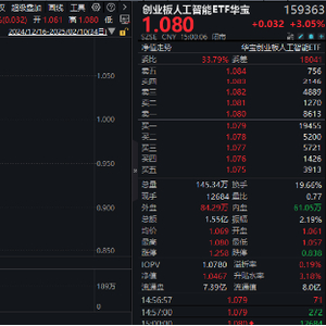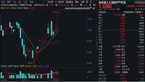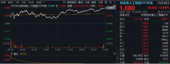 全市场唯一的创业板人工智能ETF华宝(159363)场内价格收涨3.05%,强势四连升,创上市以来新高!