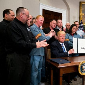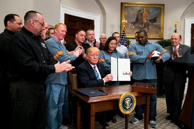 2018年3月8日,无视美国商业团体对价格上涨的警告,特朗普在白宫签署行政令,宣布对美国进口的钢铁施加25%的额外关税,同时把进口铝的关税上调了10%。随后他又在6月将钢铝关税扩展到加拿大、墨西哥和欧盟。