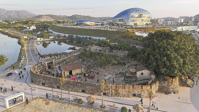 两条ETFE气枕膜打造的“鲸鱼”凌空跃起,白天透光如水晶,夜晚灯光变幻似极光。该服务区还藏着“小心机”:屋顶动态光影、滨海观景绿道、海洋涂鸦墙,甚至有炮台遗址和古村景区,让旅客忍不住放慢脚步。毗邻的长沙湾炮台景区春节期间推出民俗主题游活动,增设红色文化展陈、滨海观景打卡点及亲子互动项目,成功吸引众多家庭游客。