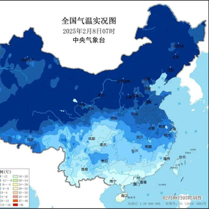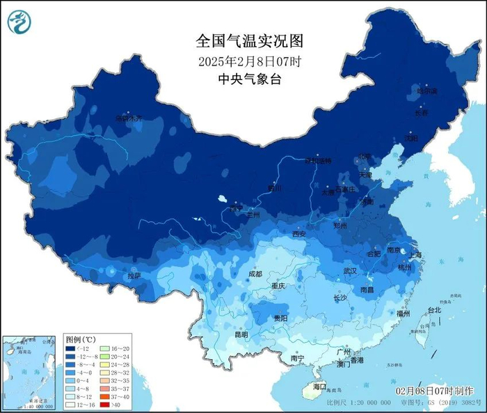 2025年2月8日早晨7点我国气温分布图。(图/中央气象台)