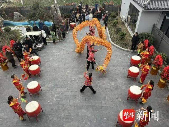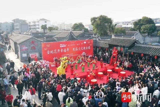 除了美食文化,黄桥的历史文化同样令人流连忘返。漫步在黄桥的古街巷间,可以欣赏到众多保存完好的明清建筑,如珠巷、米巷、罗家巷等,共计 24 条。这些古街巷沿街以店面房为主,前店后作,展现了黄桥旧时城镇的独特风貌和地方特色。同时,这里还散落着少量宋代建筑以及大批唐宋明清时期的石刻、木匾等珍贵文物,为游客提供了一场穿越时空的文化之旅。春节期间,黄桥的明清古楼都换上了“新装”,春联、窗花、新年饰品……每一处细节都洋溢着节日的欢腾。在文江故居附近的停车场内,一场盛大的文化演出同步举行,鼓乐说唱、花鼓、莲湘、大鼓……一个个极具特色的传统民俗表演轮番上演,让观众大饱眼福的同时,也能近距离感受到传统文化的魅力,拥抱浓浓的年味。“我是冲着红色文化老区的名号来旅游的,没想到一来就看到这么精彩的人文表演,黄桥的民俗确实很有趣。”来自江西景德镇的游客陈超兴高采烈地说道。