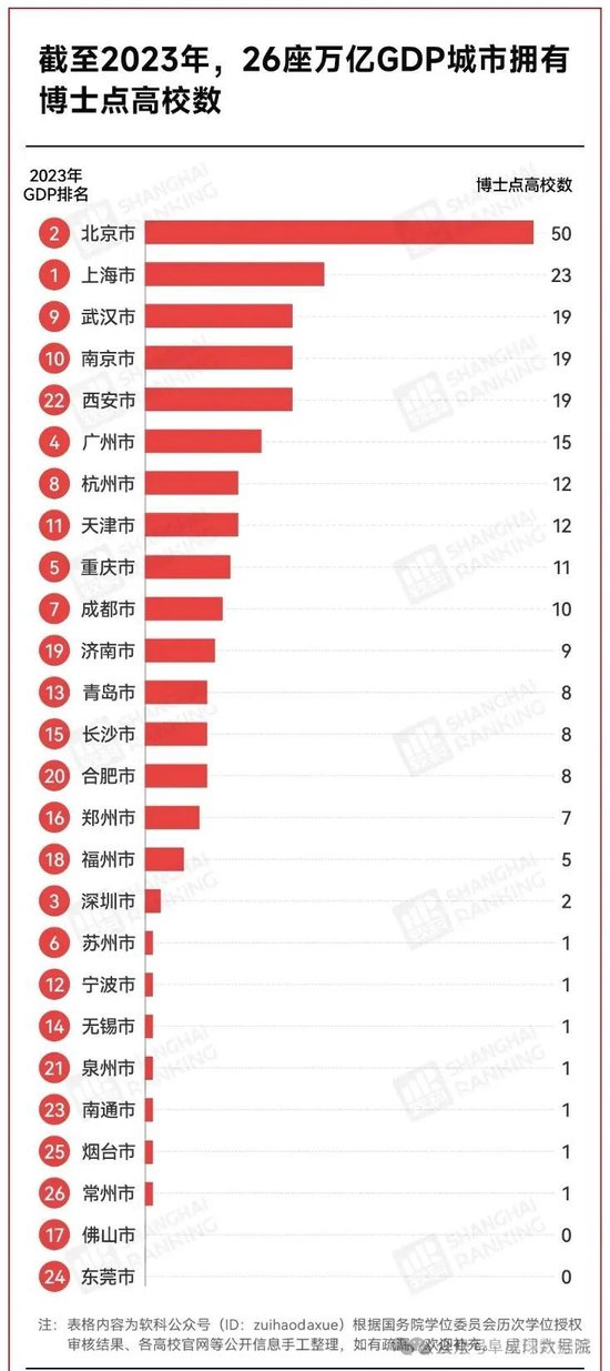 我们先以南京与杭州比较为例。去年南京GDP1.85万亿、全国第10名,杭州为2.16万亿、全国第8名,综合体量上没有太大差距。在基础科研和人才储备上,南京则远远优于杭州,南京拥有292个博士点(包括专业学位博士点),全国排名第二,仅次于北京、比上海还要多;南京所在的江苏省的在读研究生数量全国第二,也是仅次于北京,超过广东、浙江两大经济强省之和。