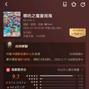 自电影上映以来,包括《哪吒・三界往事》原创绘本、《魔童闹海艺术设定集》及《敖丙传》在内的哪吒相关图书,整体销售额已突破1800万。数据显示,在天猫上,近期《哪吒2》正版授权的相关绘本和图书成交环比上映前一周增长超过4000%。