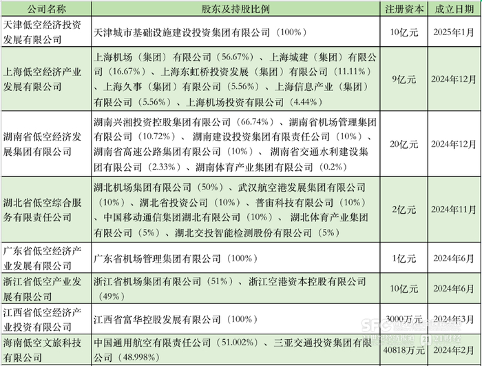 2025年以来,天津低空经济投资发展有限公司、内蒙古陆港低空产业有限公司等地方国企先后成立。