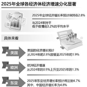 在经历2024年缓慢复苏后,2025年全球经济走向备受关注。近期,多家国际机构发布2025年全球经济展望报告,对全球经济增速作出谨慎乐观的判断,尤其是通胀率将继续逐步放缓,货币政策将转向宽松。从长期来看,全球经济仍存在复杂性和脆弱性,面临诸多挑战。各国政府需要采取积极的应对政策,推动经济增长、应对潜在风险,同时,加强国际合作和多边机制,这对共同应对全球性挑战和实现可持续增长至关重要。