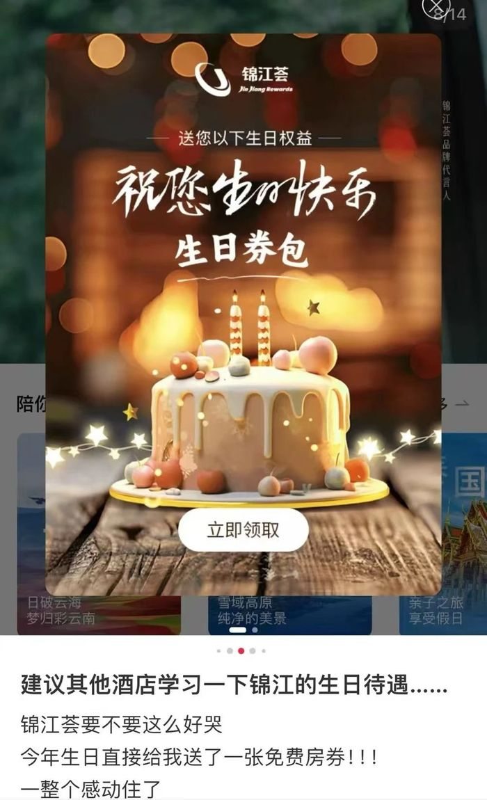 近日,锦江荟会员权益焕新,权益焕新后的锦江荟为会员提供了更为丰富的生日礼遇,除丰厚实用的礼券包外,白金卡会员生日当天将特别享有一张免费房券,可预订全国万家酒店的免费房晚。有网友表示:“这波操作,直接把实际优惠和情绪价值都拉满了。”