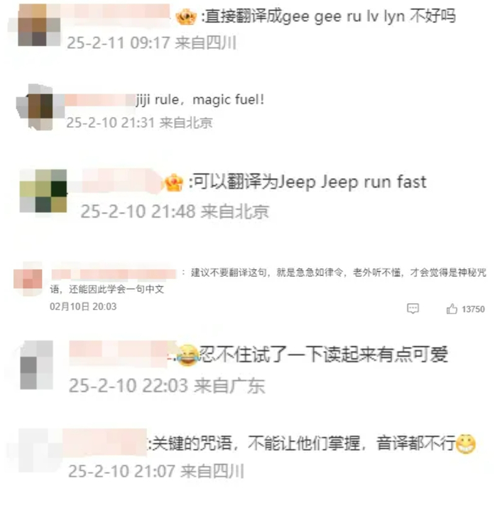 部分网友主张直接使用 “Ji Ji Ru Lyu Ling” ,类比《狮子王》中的“Hakuna Matata”,通过文化输出让英语观众接受原声咒语。
