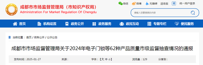 中国质量新闻网讯 近日,成都市市场监督管理局通报2024年电子门锁、卫生用品(卫生纸、纸巾纸、厨房纸巾、湿巾)等62种产品质量市级监督抽查情况。本次抽查卫生用品(卫生纸、纸巾纸、厨房纸巾、湿巾)产品51批次,其中生产领域35批次、流通领域16批次,检出1批次产品质量不合格。