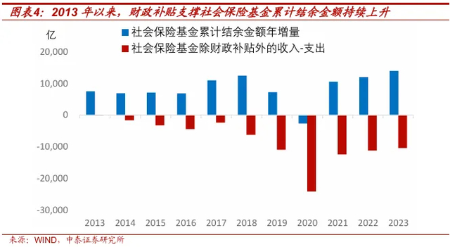 老龄化加速的背景下,社会保险基金对财政补贴的需求可能持续上升。这种潜在支出责任,也是当前财政加杠杆的约束之一。