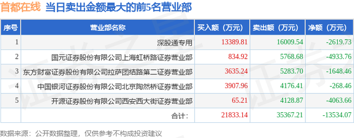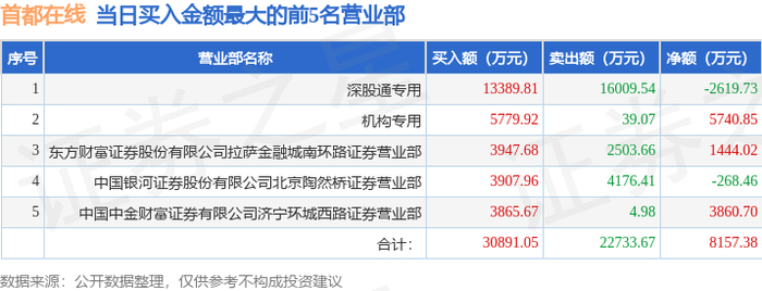 2月11日首都在线龙虎榜数据:游资虹桥路徐晓上榜