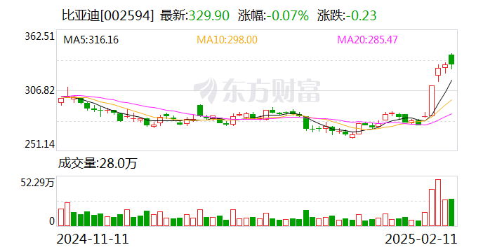 公开资料显示,比亚迪(002594.SZ)成立于1994年,总部位于广东省深圳市,新能源汽车为其主营业务。2024年半年报显示,汽车及汽车相关产品业务线营收占比超过75%。2024年比亚迪新能源汽车销量达到427万辆,同比增长41%。