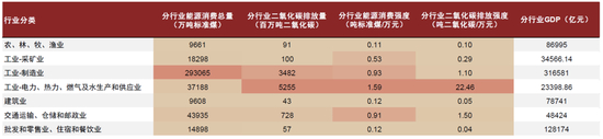 图表5:2021年我国分行业能源消费与碳排放数据