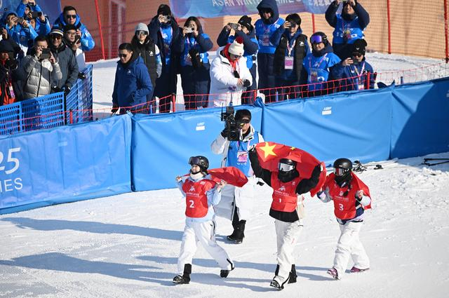 刷新纪录的时刻发生在自由式滑雪赛场。在女子坡面障碍技巧比赛结束前,中国代表团本届亚冬会已收获60枚奖牌,随着中国队选手刘梦婷、杨如意、韩林杉包揽前三,中国代表团单届奖牌数历史纪录被刷新。