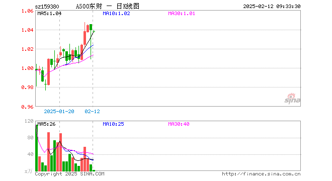 A500ETF东财(159380)业绩比较基准为中证A500指数收益率,管理人为西藏东财基金管理有限公司,基金经理为吴逸、姚楠燕,成立(2024-12-30)以来回报为3.95%,近一个月回报为5.46%。