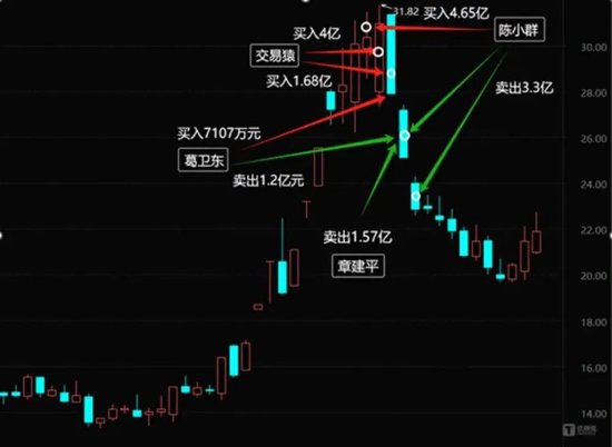 和一鸣食品有些类似,真正残酷的博弈从视觉中国股价快要见顶开始(用后视镜来看)。游资陈小群12月18日买入视觉中国1.72亿,三个交易日共买入4.65亿,卖出2023万,但高位进场后硬吃3个跌停;即便后来进场抄底的游资拿出总计8个多亿筹码(交易猿的1.7亿,海阳西路的2.4亿,桑田路的1.8亿)也难抵下滑,之后视觉中国又连跌7日。