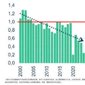 2024年,德国工业增加值同比下滑约3%,机械制造、汽车、化工等几大行业均陷入低谷,进而拖累了德国2024年出口罕见下降0.8%。