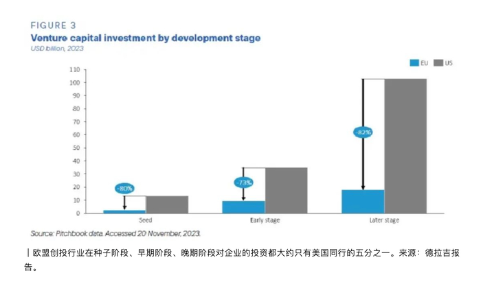 正如德拉吉所指出的,欧洲没有任何一家公司的规模接近美国科技巨头,这并不是一件好事。但更糟糕的是,与美国相比,欧盟创造下一个巨头的机会太少了。