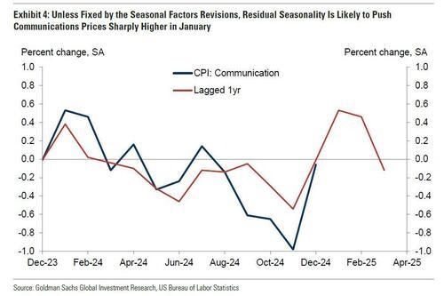 ③通讯价格。高盛预计,季节性扭曲和邮费价格上涨将推动通讯类别,相对于其通常的价格下行趋势的反弹(高盛预测1月份将上涨0.5%,而去年12月份为持平,11月份为下跌1.0%)。然而,该类别存在的季节性扭曲可能会因本周报告中发布的季节性因素年度修订而有所缓和。