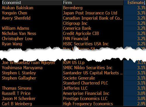 在主要投行方面,高盛的预测目前就略高于机构整体的预期中值。高盛预计1月份核心CPI将增长0.34%(而市场预期为0.3%),与去年同期相比增长3.19%(而市场预期为3.1%)。该行还预计1月份总体CPI将增长0.36%(而市场预期为0.3%),反映出食品价格上涨0.4%,能源价格上涨0.6%。