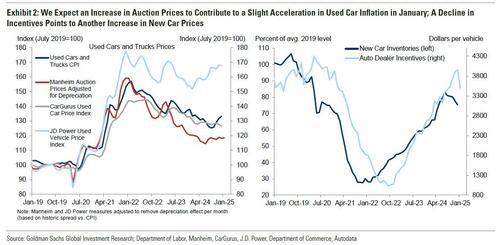 ①汽车价格。继去年12月上涨1.2%之后,该行预计二手车价格1月份将加速上涨1.5%,反映出二手车拍卖价格上涨。新车价格上涨0.5%,因为1月份经销商促销优惠导致环比下降12%。