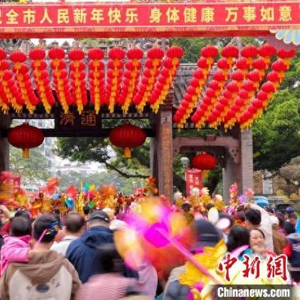 中新网佛山2月12日电 (程景伟 邹静姬)“行通济,冇闭翳。”12日是正月十五元宵节,广东佛山“行通济”大型民俗活动迎来高峰期,现场人潮绵延不绝,市民们举着风车、拎着生菜,带着美好祝愿,满心欢喜走过通济桥。