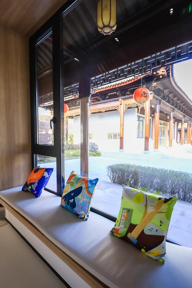 书院建筑沿袭中式书院风格,呈严谨的中轴线对称式布局,中庭有两进,两边围廊各有四间房。大隐书局总经理何旋推荐从大门右手开始“游览”,右边围栏两间依次为亲子阅览室、少年阅览室,最深处的“文昌阁”一楼为咖啡空间、二楼为综合阅览室,前面一进为茶饮空间,左边围栏两间分别为雅集空间和文创合集,庭院里可以举办市集,整条动线动静相宜,足以消磨半天乃至一天的时光。