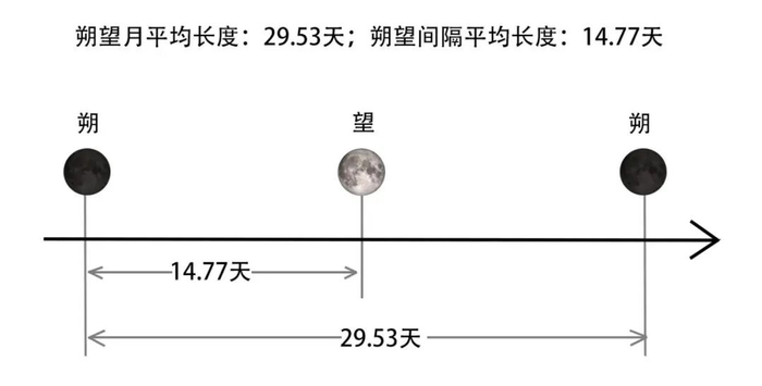 由于包含了“朔”和“望”这两个重要节点,因此农历的月被称为“朔望月”,一个“朔望月”平均29.53天。