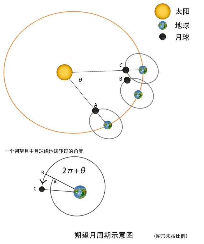 正因为地、月都在轨道上 “时快时慢”的运动,导致每个“朔望月”的长度不固定,而是在一定范围内变动。