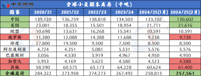库存下调:2024/25年度全球小麦期末库存下调至2.576亿吨,较上月调低125万吨,因为中国的库存下调幅度超过俄罗斯、哈萨克斯坦和乌克兰的库存增幅。