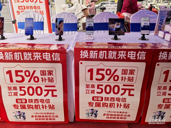 国补换新机,实惠看得见。启动仪式上,来自小米、VIVO、华为、OPPO、荣耀等多家品牌商现场发布主流产品及补贴政策。据了解,今年我省以旧换新政策再加力,并首次将手机、平板、智能手表和手环纳入补贴范围,以实实在在的优惠和舒心的消费体验,更好地满足人民群众对美好生活的需要。中国电信渭南分公司积极响应国补政策的落实,市民参与国补电信换新机活动时,不仅能享受15%最高500元的国家补贴,办理电信套餐还可享受最高2000元的电信专属橙分期购机补贴、或者最高5000元的话费赠送,进一步提升消费者的购买体验。