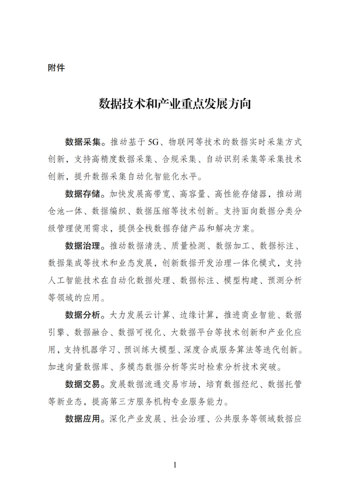 支持企业加大创新投入,培育一批面向数据采集汇聚、计算存储、流通交易、开发利用的技术创新型企业,重点支持原创性引领性数据科技创新发展。