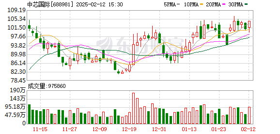 2月12日,中芯国际港股开盘即涨,全天涨幅超过5%。A股同样红盘报收,股价涨至104.32元,总市值超过8300亿元。值得一提的是,今年1月2日,中芯国际港股和A股分别报收29港元/股和89.96元/股,这意味着,中芯国际港股年内累计涨超65%,A股累计涨超16%。