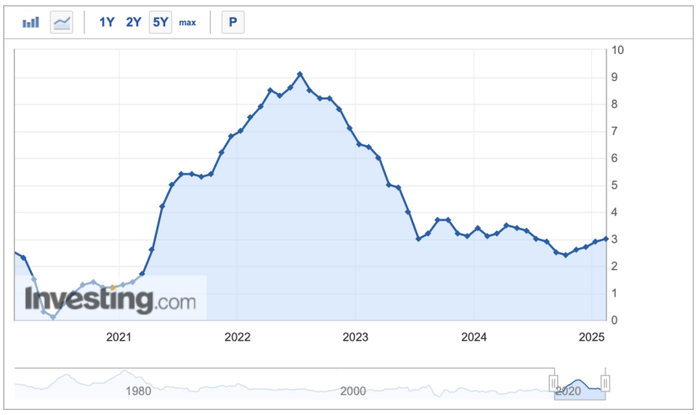 北京时间2月12日晚间,美国劳工统计局公布了2025年1月CPI报告,其中显示,美国1月CPI同比增长3%,为2024年6月以来最大增幅,高于市场预期的2.9%,前值为增长2.9%;1月CPI环比增长0.5%,亦高于市场预期的0.3%,前值为增长0.4%。