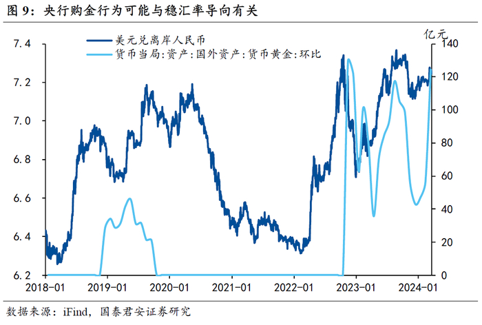 2018年以来,美债实际利率依然可以解释黄金短期波动,但长期趋势的决定因素转变为人民币汇率。这一定价逻辑完美解释了2024年3~4月份的黄金行情——美债利率阶段性走低是催化剂,人民币汇率守关键点位是助推器。以这个框架来判断后续黄金走势,Q3大概率是黄金年内第二波主升浪的起点,预计央行后续将重新增持黄金,有望成为重要的助推力。