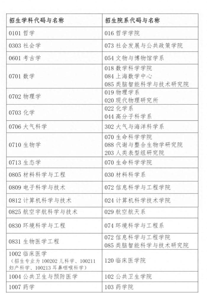 招生学科。图/复旦大学