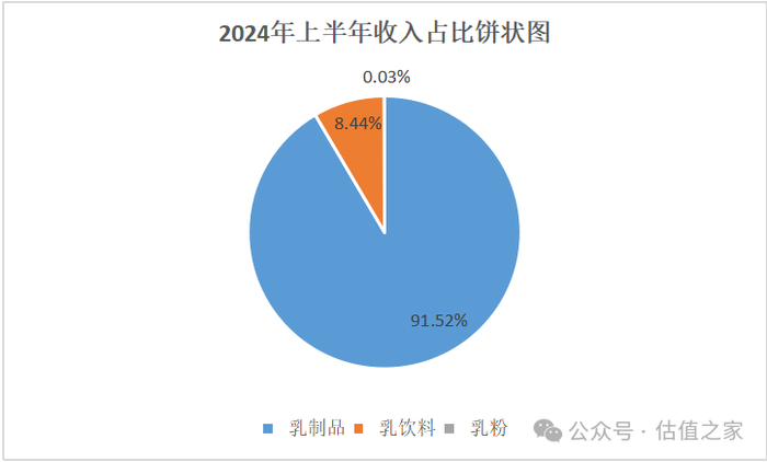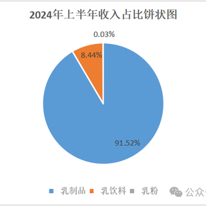 根据阳光乳业2024年上半年年报数据,按产品分类:乳制品销售收入2.33亿元,收入占比91.52%;乳饮料销售收入0.21亿元,收入占比8.44%;乳粉销售收入8.58万元,收入占比0.03%。按地区归类,江西省内占比95.24%,江西省外占比4.76%。详见下图。