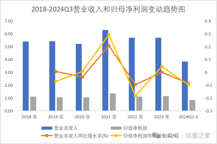 2024年前三季度,营业收入降低8.72%,归母净利润降低9.81%,主要受全球经济形势和国内消费降级等因素影响。在当下竞争激烈的市场环境中,仍能保持这样稳定的成绩已属不易。