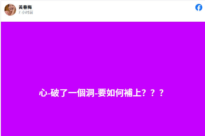 2月12日凌晨, 黄春梅发文表示:“心破了一个洞要如何补上???”