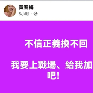 2月13日凌晨,大S的妈妈黄春梅再度发声:“不信正义换不回,我要上战场,给我加油吧!”