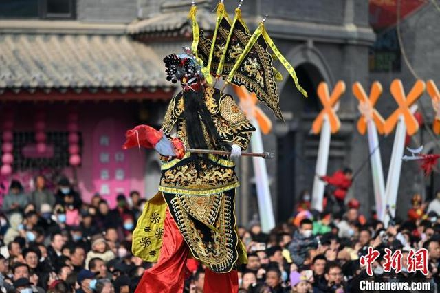 2月12日,甘肃兰州老街,观看社火表演的民众。当日是农历正月十五元宵节,兰州老街举行丰富多彩的社火展演,迎接元宵节的到来。中新社记者 九美旦增 摄