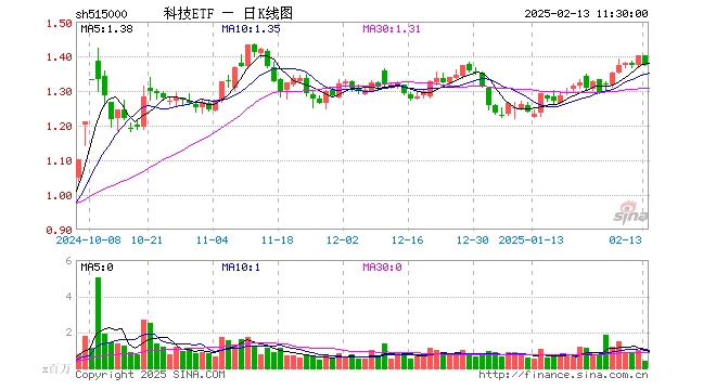 科技ETF(515000)跌1.86%,半日成交额5704.16万元