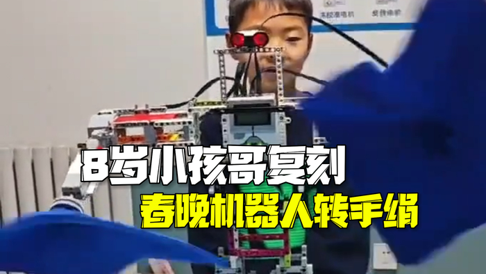 8岁小孩哥用乐高完美复刻春晚机器人转手绢