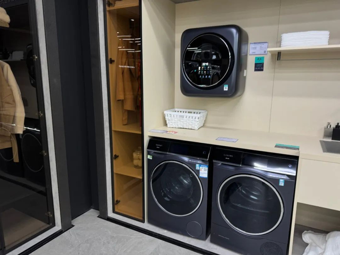 集成正在成为重要的发展潮流。卡萨帝中子·融朗洗烘护一体机和小天鹅双洗站MAX分别展现出海尔和美的作为洗衣机两强对于集成的不同思考。卡萨帝中子·融朗洗烘护一体机将洗衣机和干衣机融合在一台产品上,通过同一个操作系统控制,产品的高度控制在160cm,实现了洗烘能力的集成,解决了洗干套装固有的劣势。小天鹅双洗站MAX则是跨品类集成的代表,巧妙地将热泵洗烘一体机和扫拖机器人融合在一台产品上,打造出家居集成清洁中心。虽然集成思路并不相同,但是两者都展现出洗衣机企业正在以集成的视角重新审视和洞察衣物洗护和家居清洁。此外,还有一类多功能集成产品的发展值得关注,那就是已有多家企业布局的热泵洗烘一体机。与拥有两个滚筒的洗烘护集成一体机不同,热泵洗烘一体机只有一个滚筒,同样实现了洗涤和烘干功能的集成,以热泵技术升级了洗烘一体机的烘干能力,一定程度上补强了洗烘一体机在烘干能力上的短板。有业内人士坦言:“洗衣机行业的集成仍处于发展初期,各家企业的思路并不统一,很难说现在的产品就是未来的终极形态,集成类产品大概率还会接着演变,企业需要持续探索。”