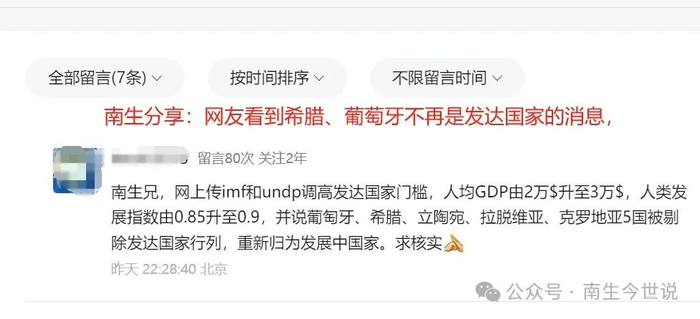 无论是看国际货币基金组织,还是观察联合国开发计划署公开的人类发展指数报告,都未查询到:发达国家的门槛变得更高的消息,葡萄牙、希腊、立陶宛、克罗地亚等国都还在名单中。