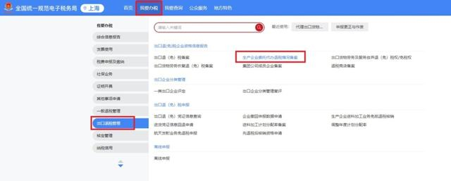 登录新电子税局后,点击【我要办税】-【出口退税管理】-【出口退(免)税企业资格信息报告】-【生产企业委托代办退税情况备案】