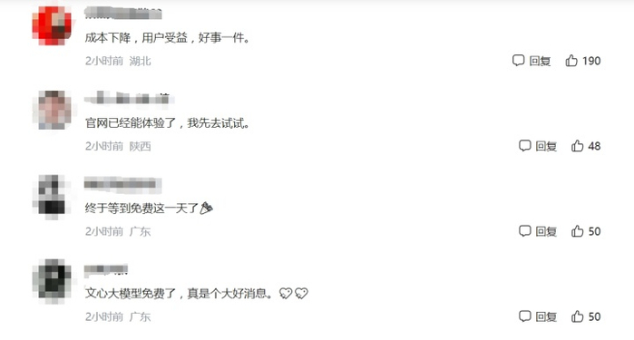 听到这一消息后,网友们纷纷表示“成本下降,用户收益,是件好事”“终于等到免费的这一天了”,还有网友表示已经收到了文心一言的退费短信。