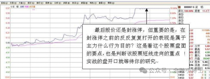这种益口和上面的例子,在主力行为是同样的。最后股价还是封涨停,但重 要的还是益中的表现是属手主力什么行 为目的是看盘的要点。
